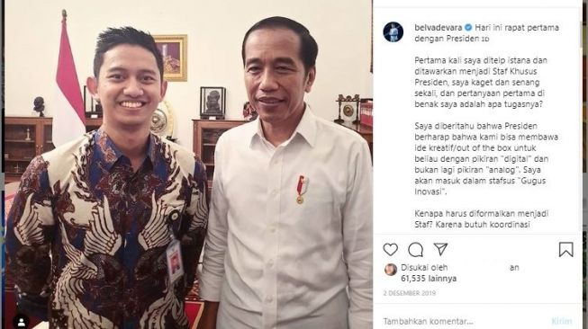 Sebelumnya, CEO Ruangguru Adhamas Belva Syah Devara mengumumkan pengunduran diri sebagai Staf Khusus Milenial Presiden Joko Widodo, Selasa (21/4/2020).(Suara.com)