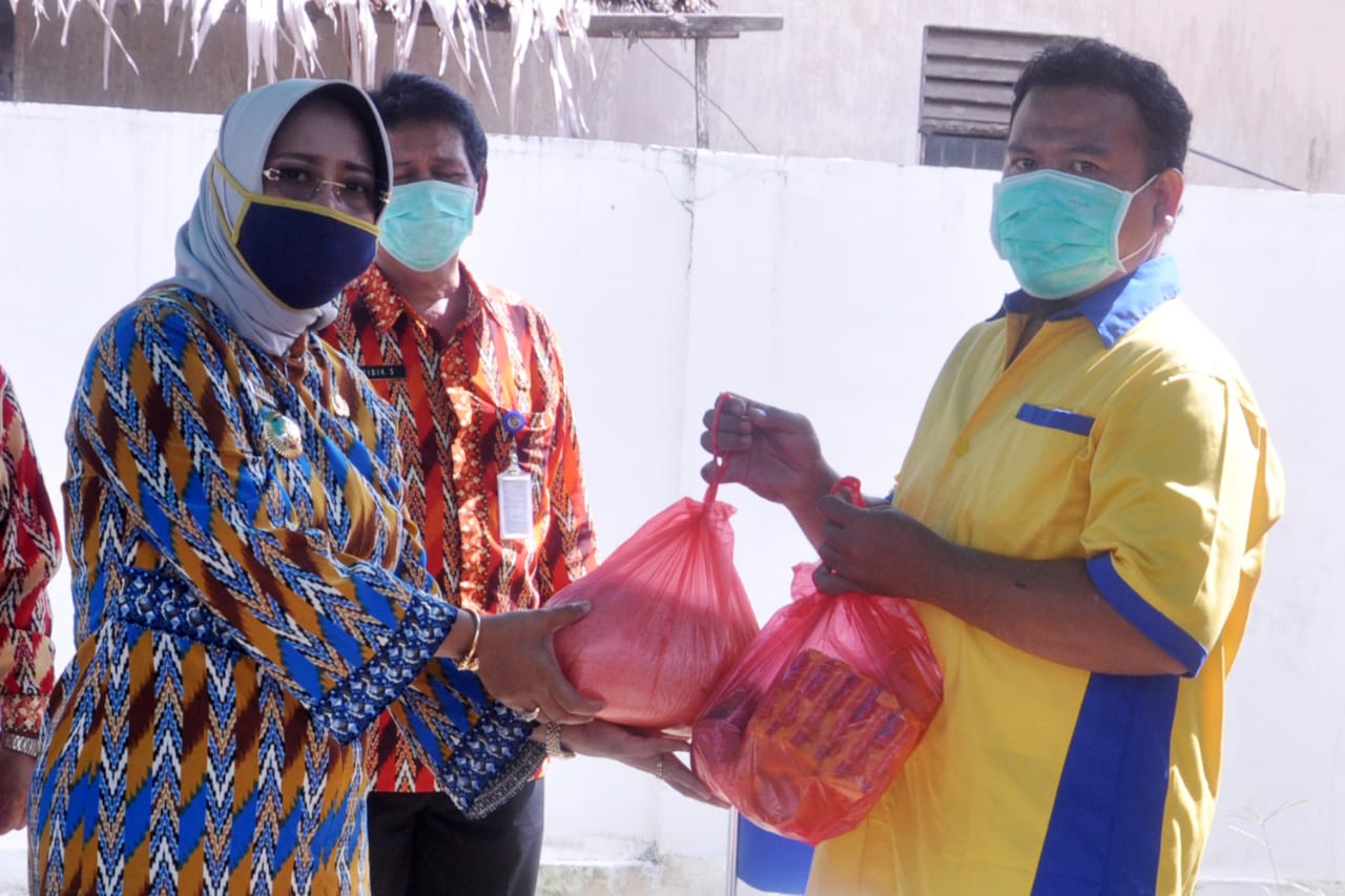 “Bantuan ini akan kami serahkan kepada sejumlah pihak seperti OPD terkait yang nantinya dapat diberikan kepada tenaga petugas kebersihan, juru parkir, petugas kebersihan pasar, relawan, pegawai rumah sakit hingga karyawan yang terdampak PHK. Totalnya sekitar 400 paket sembako,” ungkap Erlina.