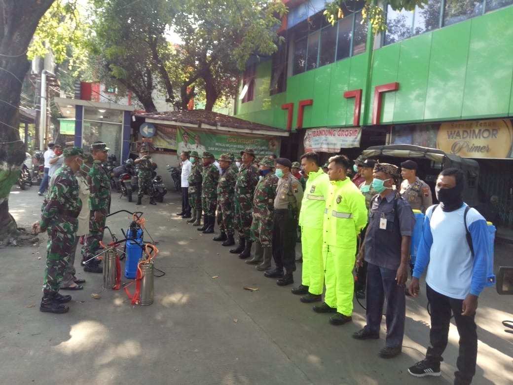 Menurut penjelasan Danramil 01/Kota, Kodim 0722/Kudus, Kapten Infanteri Sukaryono menuturkan, “bahwa dalam rangkain Program TMMD Reg. 107 yang saat ini sedang berjalan, salah satunya kita gandeng Mitra terkait, untuk melaksanakan penyemprotan mencegah berkembangnya Virus Corona (Covid-19) di lokasi Pasar Kliwon Kudus, setelah di lakukan penyemprotan di harapkan aktifitas di pasar kembali normal dan ekonomi kembali tumbuh,” jelas Bapak Karyono. Kamis (26/3/2020).