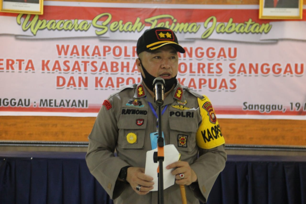 Suaraindo.id – Serah terima jabatan sejumlah pejabat di Polres Sanggau dilangsungkan Selasa (19/5/2020) di Aula Polres Sanggau dipimpin langsung Kapolres, AKBP Raymond Marcelino Masengi. Ketiga pejabat yang diserahterimakan yakni jabatan Waka Polres Sanggau, Kasat Sabhara dan Kapolsek Kapuas.