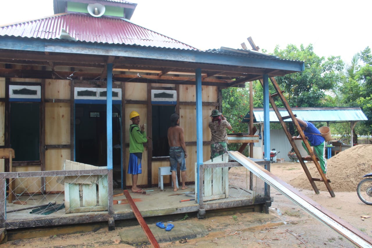 Suaraindo.id – Kegiatan TNI Manunggal Membangun Desa (TMMD) Kodim 1203/Ktp mulai dikebut pelaksanaannya,Minggu (5/7/2020), satgas bersama masyarakat Desa Beringin Rayo kecamatan Tumbang Titi, kembali bergotong royong bersama mengerjakan sasaran perehaban mushola At Taqwa.