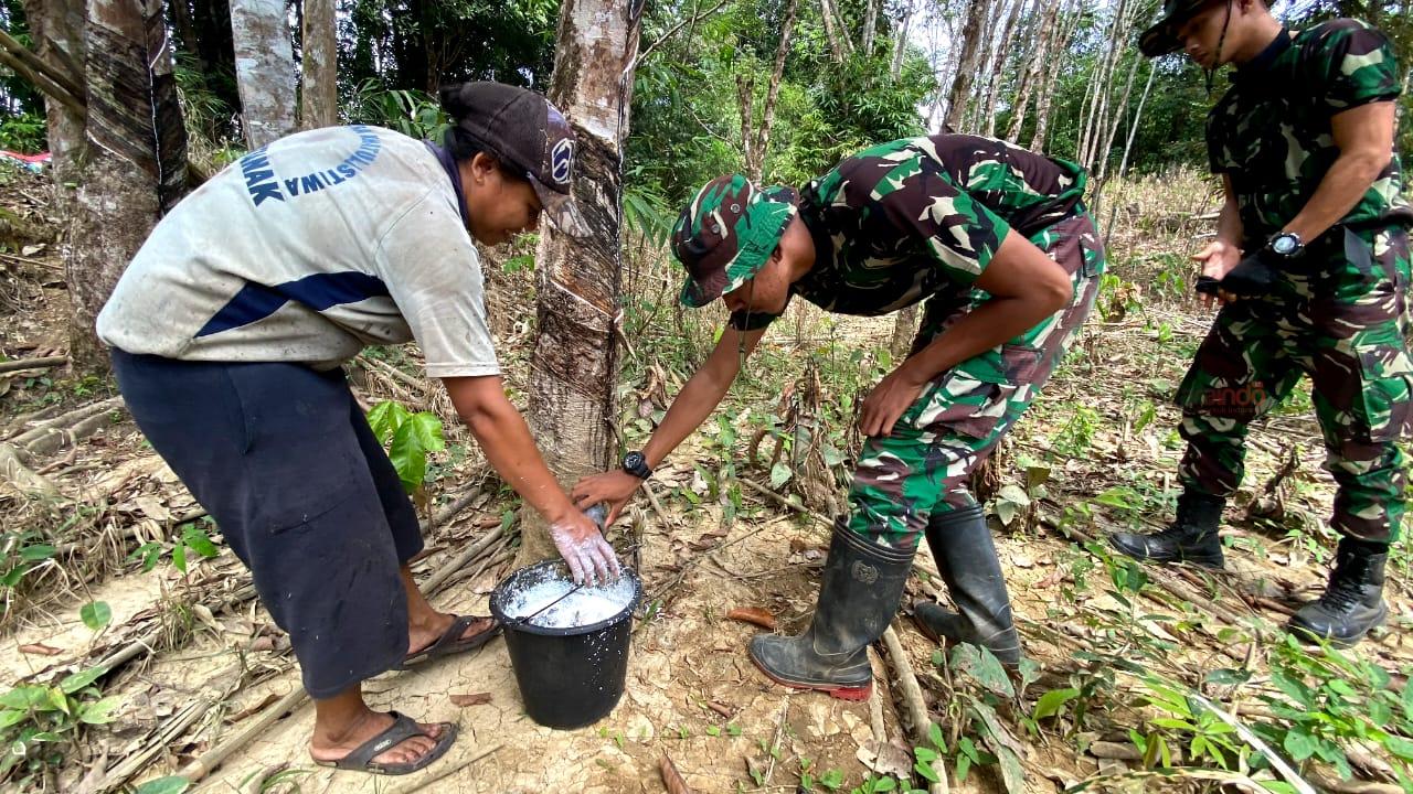 Suaraindo.id – Satgas TNI Manunggal Membangun Desa (TMMD) Reguler ke-110 Kodim 1201 Mempawah – Landak memberi pendampingan ke petani tentang tehnik menyadap karet. Pendampingan dilakukan langsung di salah satu kebun karet warga.