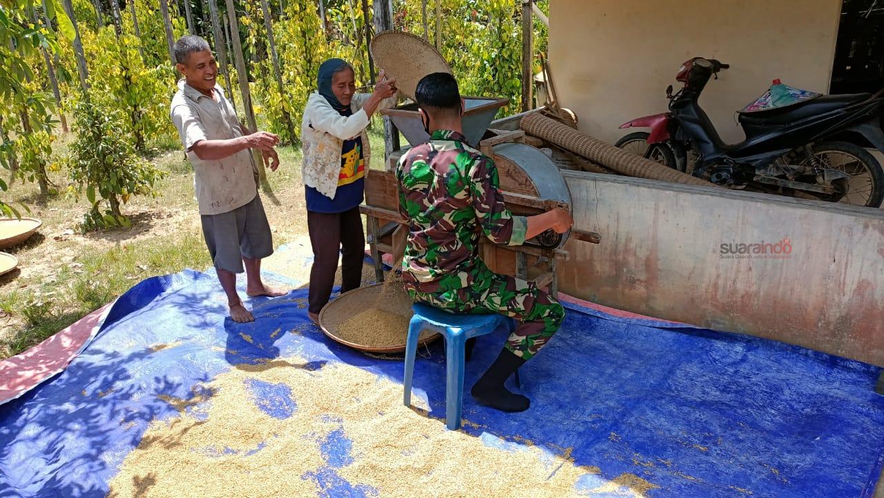 Suaraindo.id- Personil Satuan Tugas (Satgas) TNI Manunggal Membangun Desa (TMMD) ke-110 Kodim 1201 Mempawah – Landak, Prada Dandi Priyanto membantu warga Desa Tolok, Kecamatan Menyuke, Kabupaten Landak membersihkan ampas padi. Hal ini sebagai dukungan penguatan ketahanan pangan masyarakat Desa Tolok.