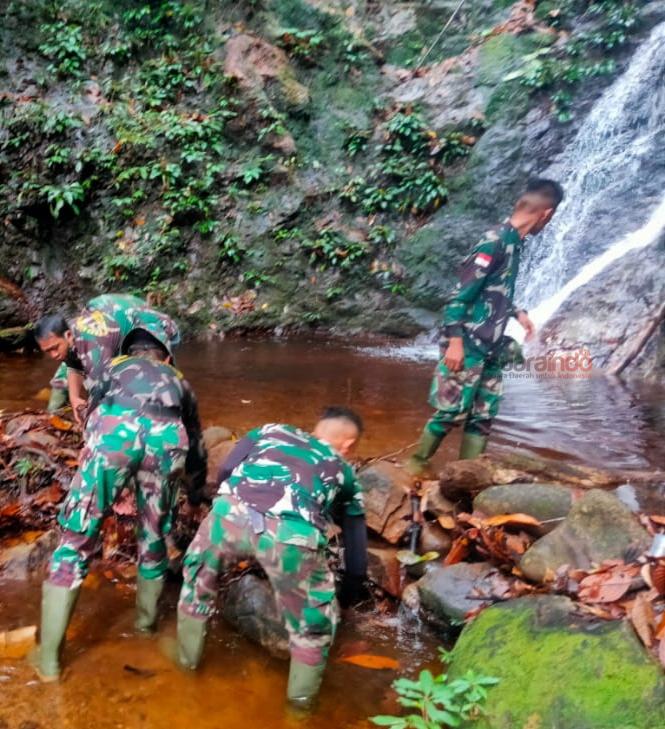 Suaraindo.id–Satgas Tmmd 110 Putussibau Pembersihan Lokasi Pari wisata Gurung Rusa yang berada di Bukit Zimat Sakti,10.3.2021