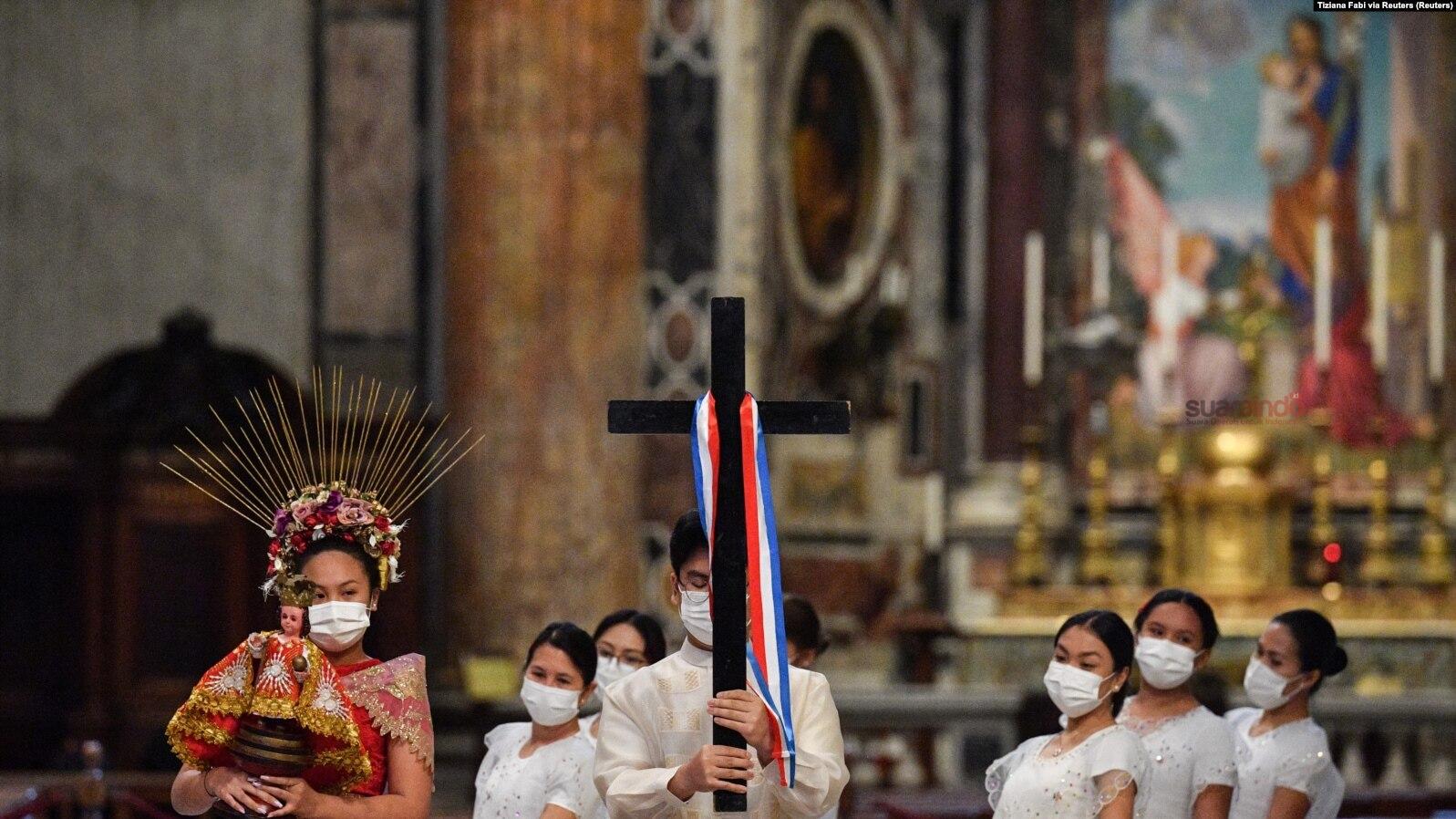 Misa di Basilika Santo Petrus itu dimulai dengan prosesi dalam kostum tradisional Filipina dan dirayakan dengan kehadiran beberapa perwakilan Gereja Filipina, termasuk Kardinal Luis Antonio Tagle.