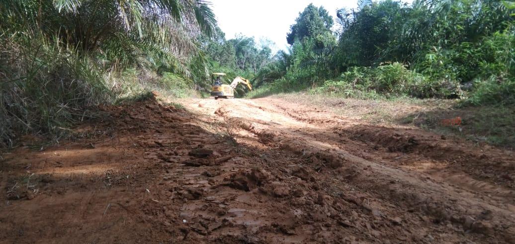 “Selain untuk mengeruk tanah, alat berat juga digunakan untuk membersihkan dahan sawit dan batang karet yang berada di bahu jalan karena badan jalan yang dibuka persis berada di tengah-tengah kebun sawit,” terang Lettu Ari Cahyono, Selasa (23/2/2021).