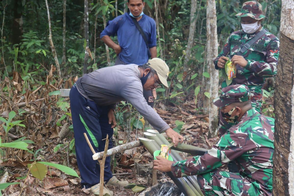 Suaraindo.id- Saat datang istirahat tampak warga berbondong-bondong mengantar makanan untuk warga dan anggota Satgas TMMD yang melaksanakan kerja bakti pembuatan jalan di Dusun Titin Kemantan, Desa Hulu Pengkadan, Kecamatan Pengkadan, Kabupaten Kapuas Hulu. Satgas TMMD dan warga menunjukkan pukul 11.30 siang itu tandanya waktu istirahat makan siang (Isoma) tiba.Selasa (09/03/2021).
