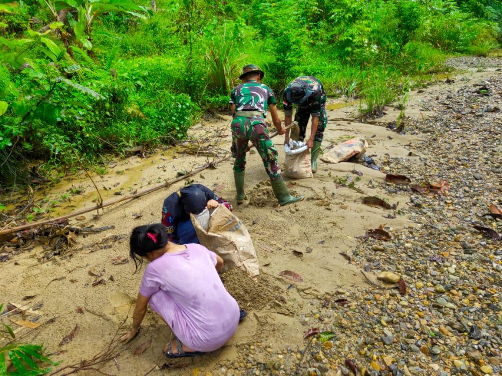 Suaraindo.id—Ibu Ibu Giat Bantu Satgas TMMD 110 -Putussibau Penyedian Material.