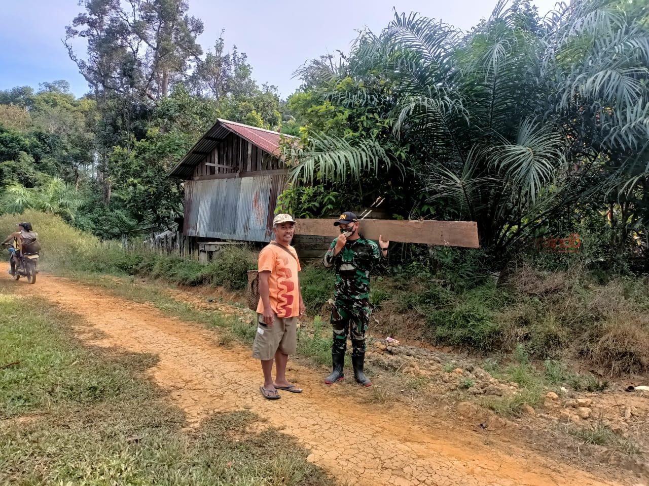 Seperti yang dialaminya saat Pius membawa papan kayu ke rumahnya. Di jalan, saat bertemu dengan salah satu Satgas TMMD yakni Prada David kayu tersebut dimintanya untuk dibantu dibawakan ke rumah.