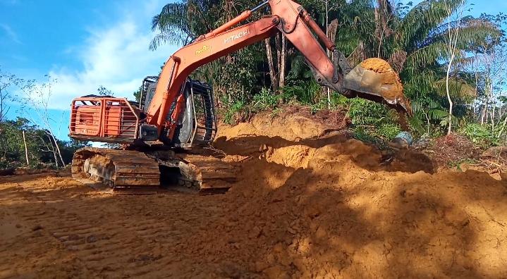 Suaraindo.id— Medan yang cukup sulit di lokasi TMMD Ke-110 Kodim 1206/Putussibau tidak menjadi halangan bagi sejumlah operator alat berat yang handal menaklukkan medan yang berat. (Yhs/1206).