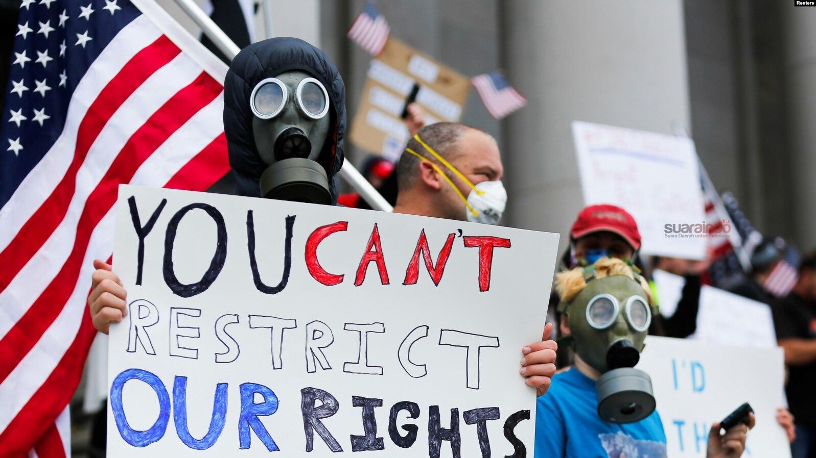 Sementara para pejabat dan ahli kesehatan masyarakat membela pembatasan tersebut sebagai tindakan penyelamatan jiwa, para penganut kebebasan (libertarian), konservatif, dan banyak orang Amerika biasa mengecamnya sebagai serangan terhadap kebebasan sipil, seperti kebebasan berkumpul dan beribadah. [ps/pp]