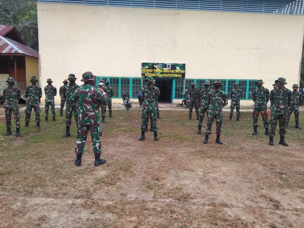Seperti apel pagi yang dilakukan Satgas Tentara Manunggal Membangun Desa (TMMD) Reguler ke 110 Kodim 1206/PSB Dusun Tintin Kemantan, Desa Hulu Pengkadan, Kecamatan Pengkadan, Kabupaten Kapuas Hulu. Selasa (09/03/2021)