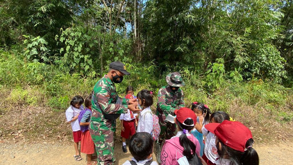 Suaraindo.id – Satgas TMMD 110/Kodim 1201 Mempawah – Landak membagikan masker kepada pelajar Sekolah Dasar yang tetap menjalankan pembelajaran tatap muka di sekolah. Pembagian masker ini sebagai bagian dari upaya memutus rantai penularan Covid-19 di Desa Tolok, Kecamatan Menyuke.