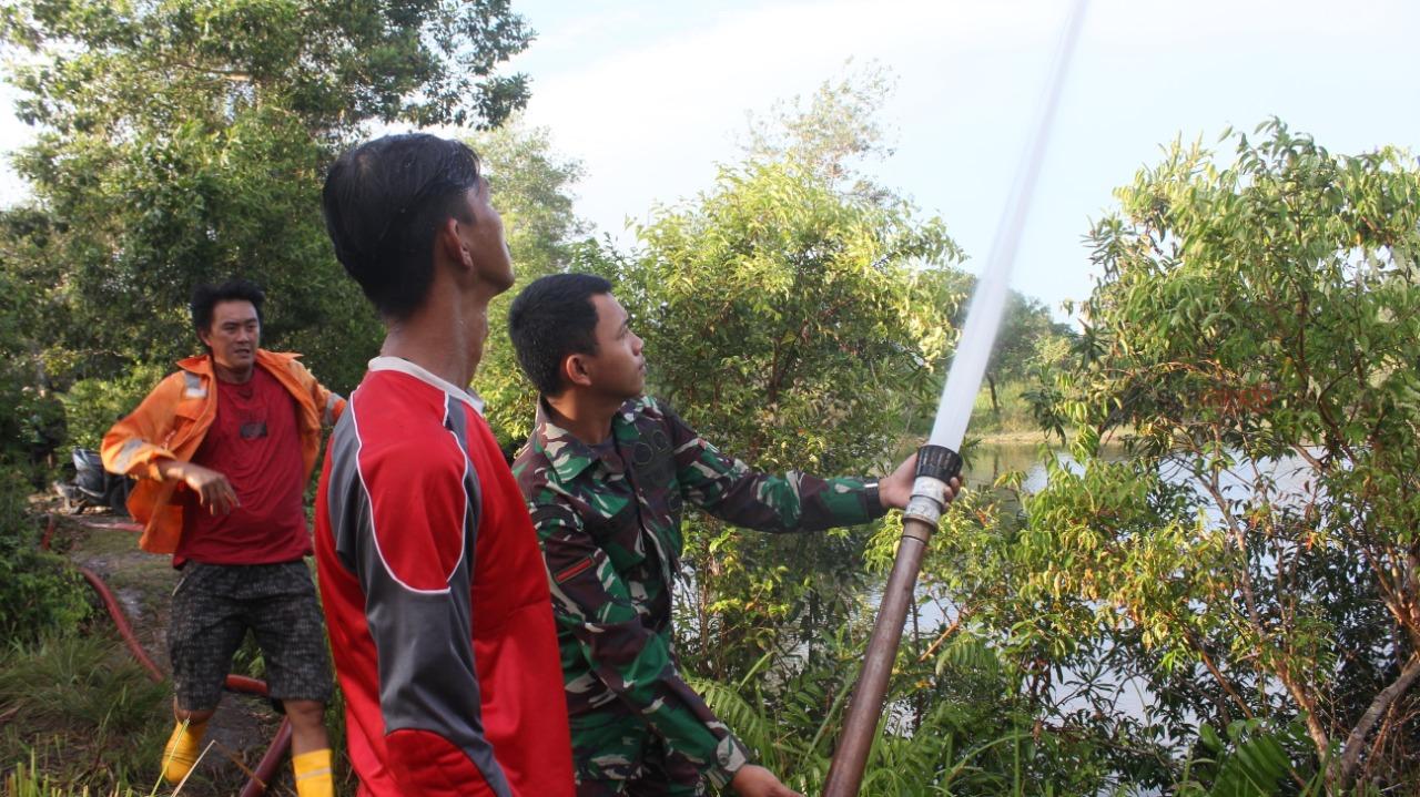 Suaraindo.id– Personil Satgas TMMD 110/Kodim 1201 Mempawah – Landak, Prada Adrianus bersama Masyarakat Peduli Api melakukan simulasi pemadaman kebakaran lahan dan pemukiman, Jumat (12/3/2021) sore.