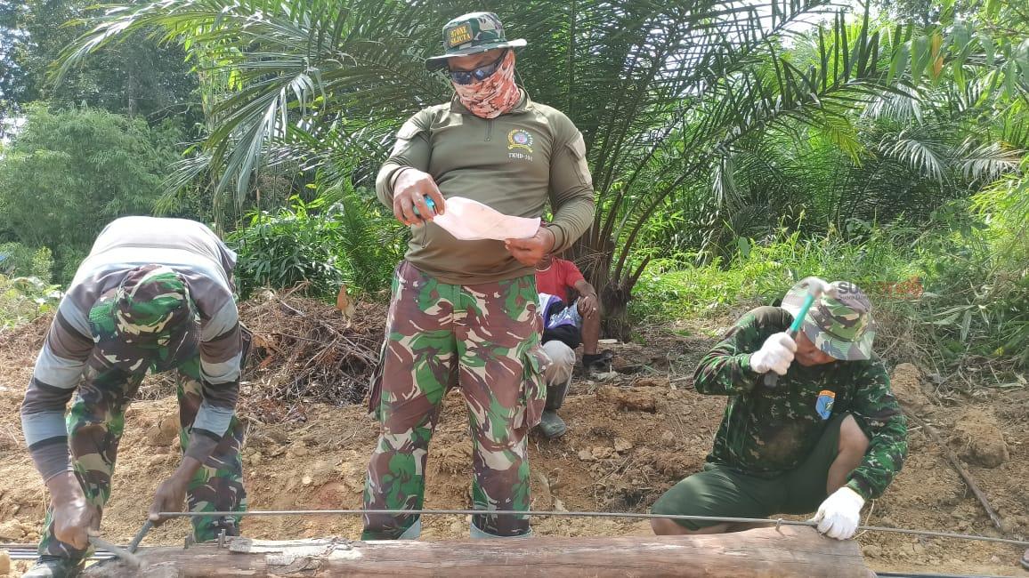 Menurutnya, untuk hari ini Anggota Satgas TMMD 110/ Kodim 1201 Mempawah – Landak sudah mulai membuat kerangka besi jembatan beton.
