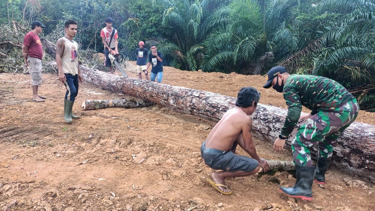 Diungkapkan, pemanfaan kayu olahan dari pohon-pohon disekitar lokasi TMMD ini juga untuk melancarkan kerja alat berat ketika melakukan pelebaran dan pengerasan.