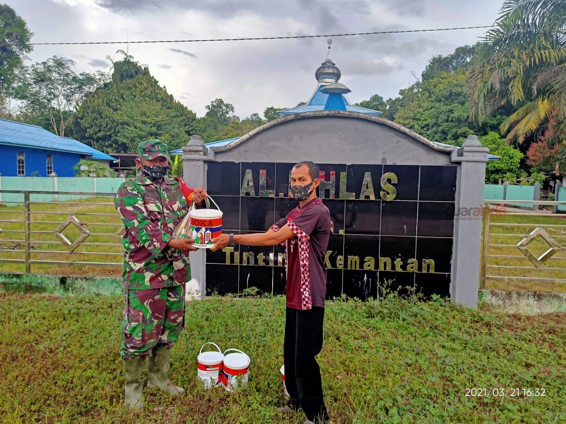Suaraindo.id—Pengkadan , Minggu 21 Maret 2021 Satgas TMMD 110 Putussibau Bantu Cat Masjid Al-Iklas