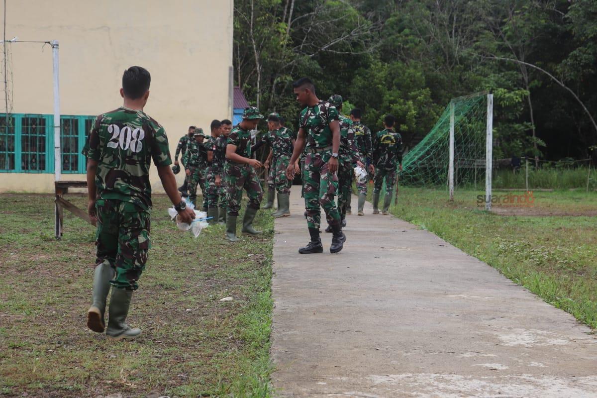 Suaraindo.id- Beberapa Anggota Satgas TMMD ke 110 Kodim/ 1206 membersihkan lapangan volly di Dusun Tintin Kemantan, Desa Hulu Pengkadan, Kecamatan Pengkadan, Kabupaten Kapuas Hulu. Senin (15/03/2021)