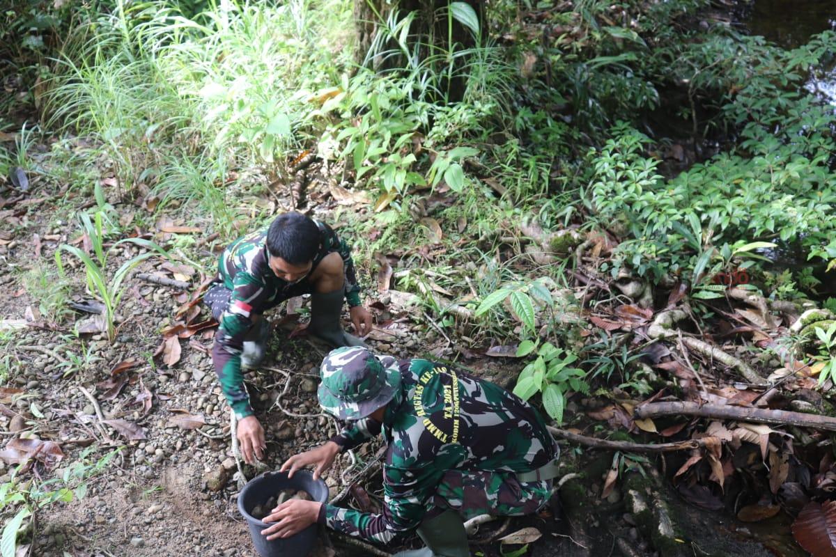 Seperti yang dilakukan, Serda Usen, salah satu anggota Personil Satgas TMMD ke -110 Kodim 1206/psb membantu masyarakat yang sedang mangambil batu batu untuk menutupi jalan yang berlobang