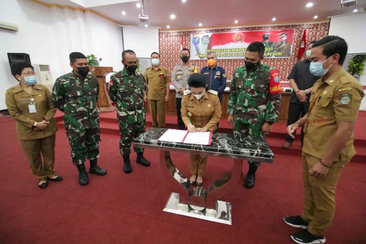 Suaraindo.id – Bupati Landak Karolin Margret Natasa resmi membuka kegiatan TNI Manunggal Membangun Desa (TMMD) ke-110 di aula utama Kantor Bupati Landak dengan dihadiri oleh Kepala Staf Korem (Kasrem) 121/Alambhana Wanawwai, Dandim 1201/Mempawah, Kapolres Landak, Danyon Armed 16/Komposit, Sekda Landak, Danramil 1201-11 Ngabang, Kepala OPD terkait, Camat Menyuke, Kepala Puskesmas Menyuke, dan Kepala Desa Tolok, selasa (02/03/21).