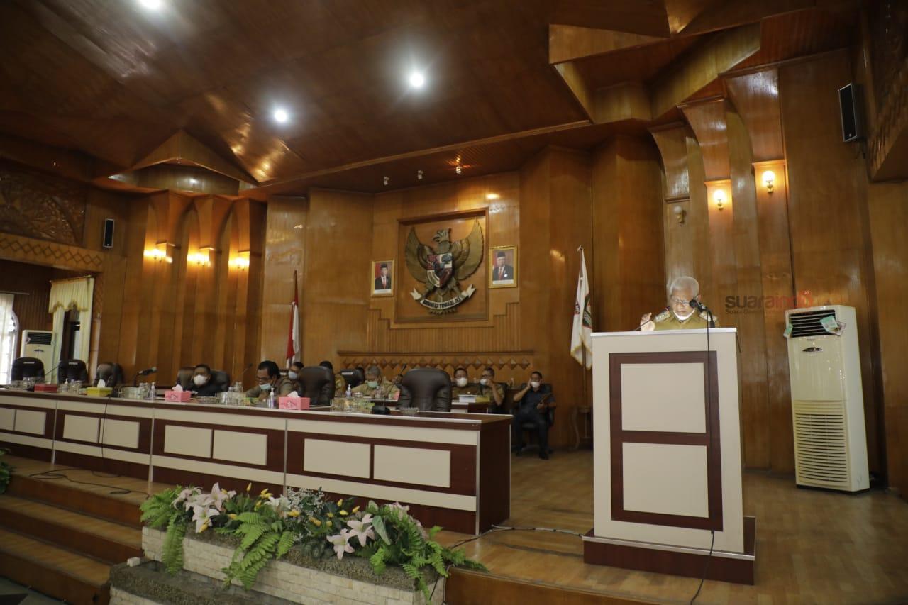 Rapat yang digelar di Aula Rambate Rata Raya Sekretariat DPRD Kabupaten Asahan dihadiri Bupati Asahan, Ketua DPRD Kabupaten Asahan, Wakil Ketua DPRD Kabupaten Asahan, Anggota DPRD Kabupaten Asahan, OPD dan tamu undangan lainnya, Senin (12/4/2021).