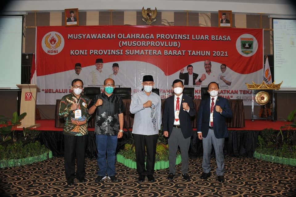 Suaraindo.id- Gubernur Sumatera Barat, Mahyeldi Ansharullah membuka Musyawarah Olahraga Provinsi Luar Biasa (Musorprovlub) Komite Olahraga Nasional Indonesia (KONI) Sumbar tahun 2021 di Hotel Pangeran Beach, Minggu (9/5/2021).