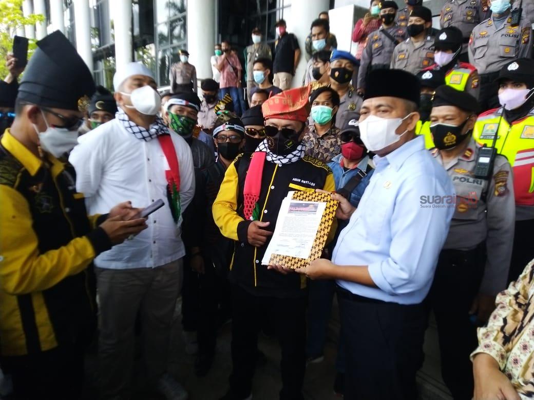 Massa kemudian diterima oleh Kepala Dinas ESDM Kalbar Syarif Kemaruzzan dan Kadis Nakertrans Kalbar Manto.