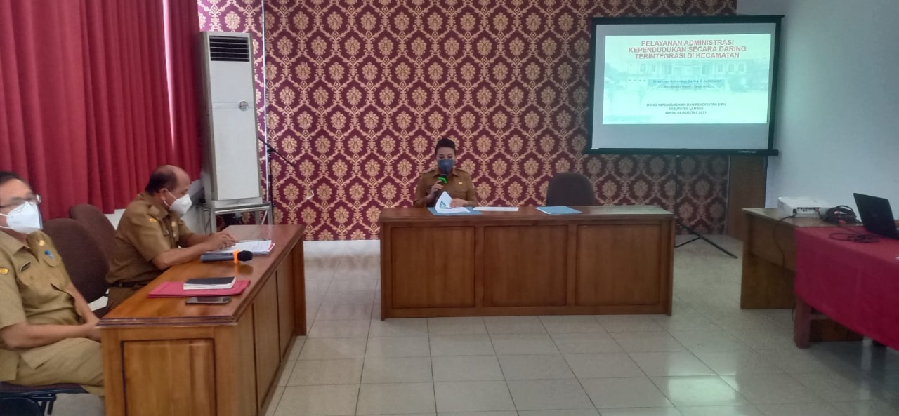 Rapat yang dilaksanakan dalam aula Kantor Bupati Landak ini membahas terkait pelayanan administrasi kependudukan (adminduk) secara daring terintegrasi ditingkat kecamatan. Hadir dalam kegiatan ini Kepala Disdukcapil, Kepala BKPSDM Landak, Kepala BPKAD, Inspektur Kabupaten Landak, Senin (9/8/2021).