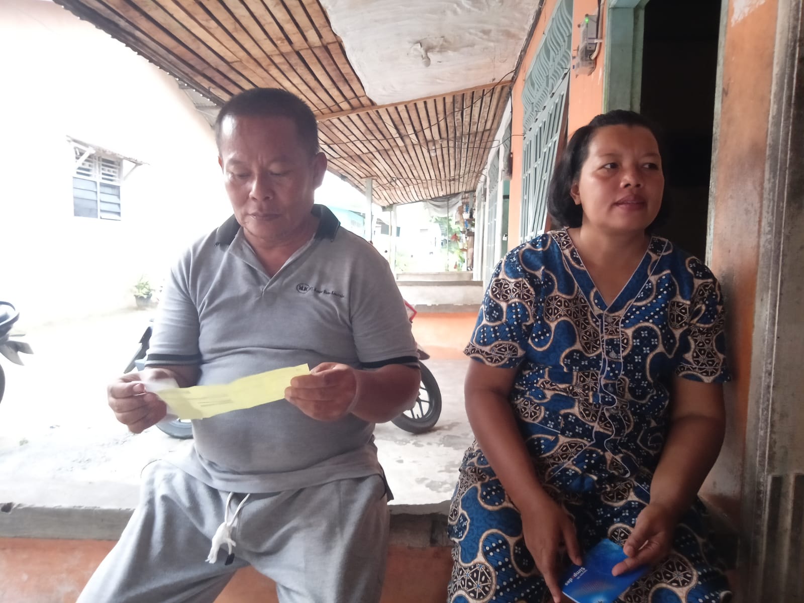 “Saya rencana mau ambil uang bantuan itu pak, karena CS nya ada tiga saya ikut antrian pada CS yang laki-laki. Dua lagi CS nya wanita. Disitu saya diajak program asuransi. Saya nggak faham. Saya diminta uang seratus ribu rupiah. Saya kasi saja, mana tau berhubungan dengan bantuan UMKM itu,” kata Dwi didampingi sang suami, Muchlis.