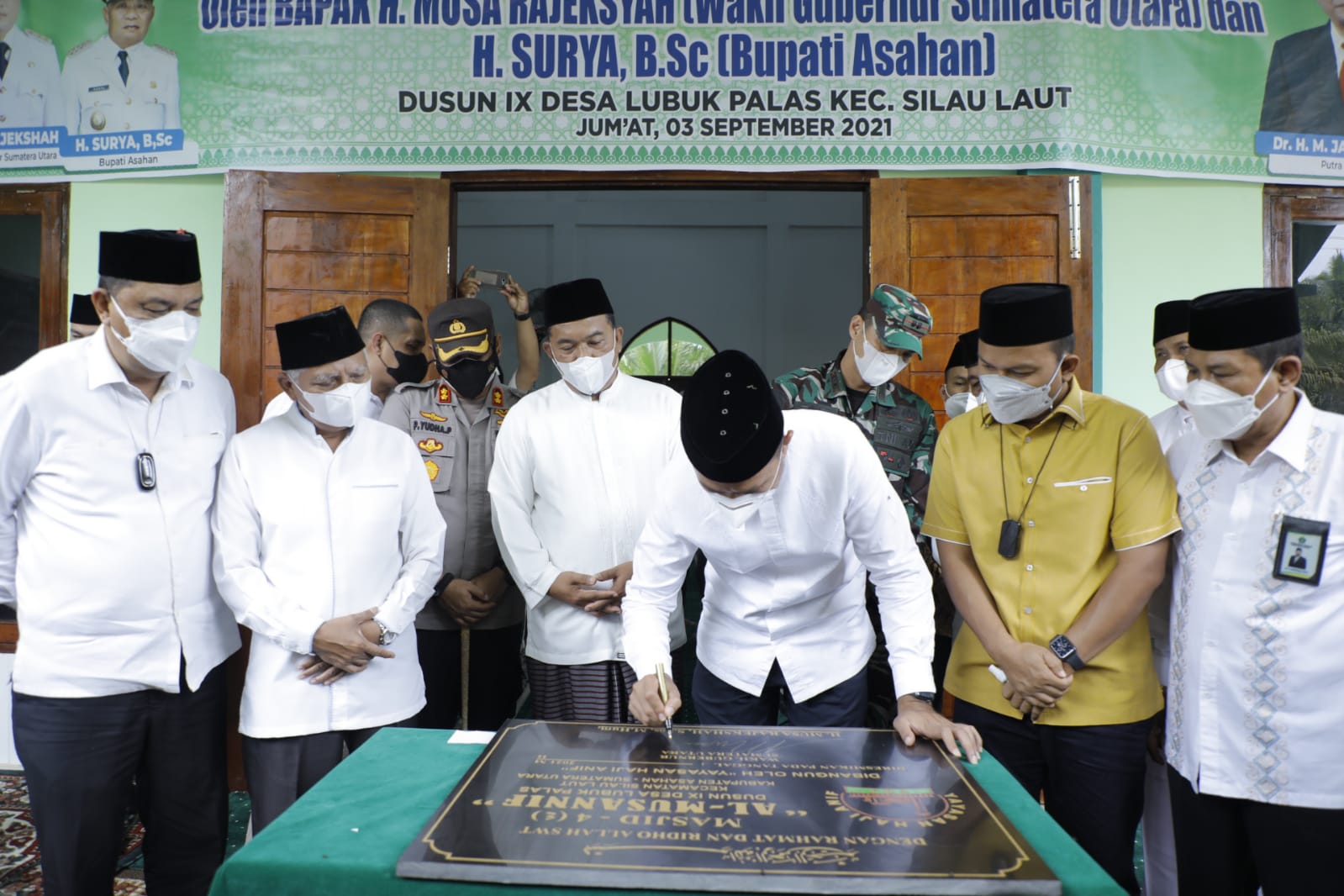 Suaraindo.id- Wakil Gubernur Sumatera Utara (Wagubsu) Drs. H. Musa Rajekshah, M. Hum meresmikan Masjid Al-Musannif Dusun IX Desa Lubuk Palas Kecamatan Silau Laut, Jum’at (03/09/2021).