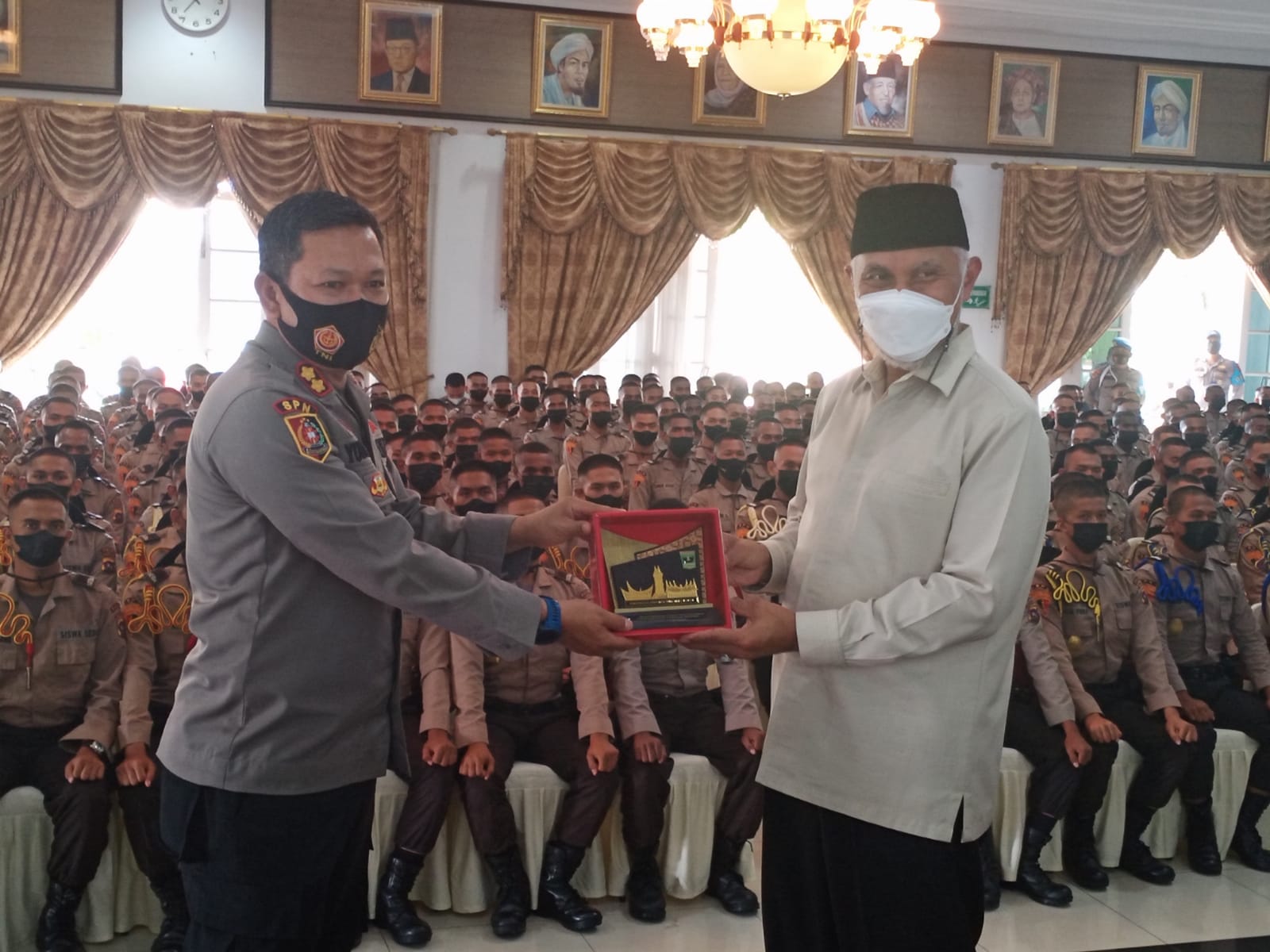 Suaraindo.id- Gubernur Sumbar Mahyeldi memberikan motivasi tentang pentingnya merawat persatuan bangsa pada acara Kohesi Sosial Siswa Pendidikan Pembentukan Bintara (Diktukba) Polri tahun 2021 SPN POLDA Sumbar Padang, di Auditorium Gubernuran, Minggu (7/11/2021).
