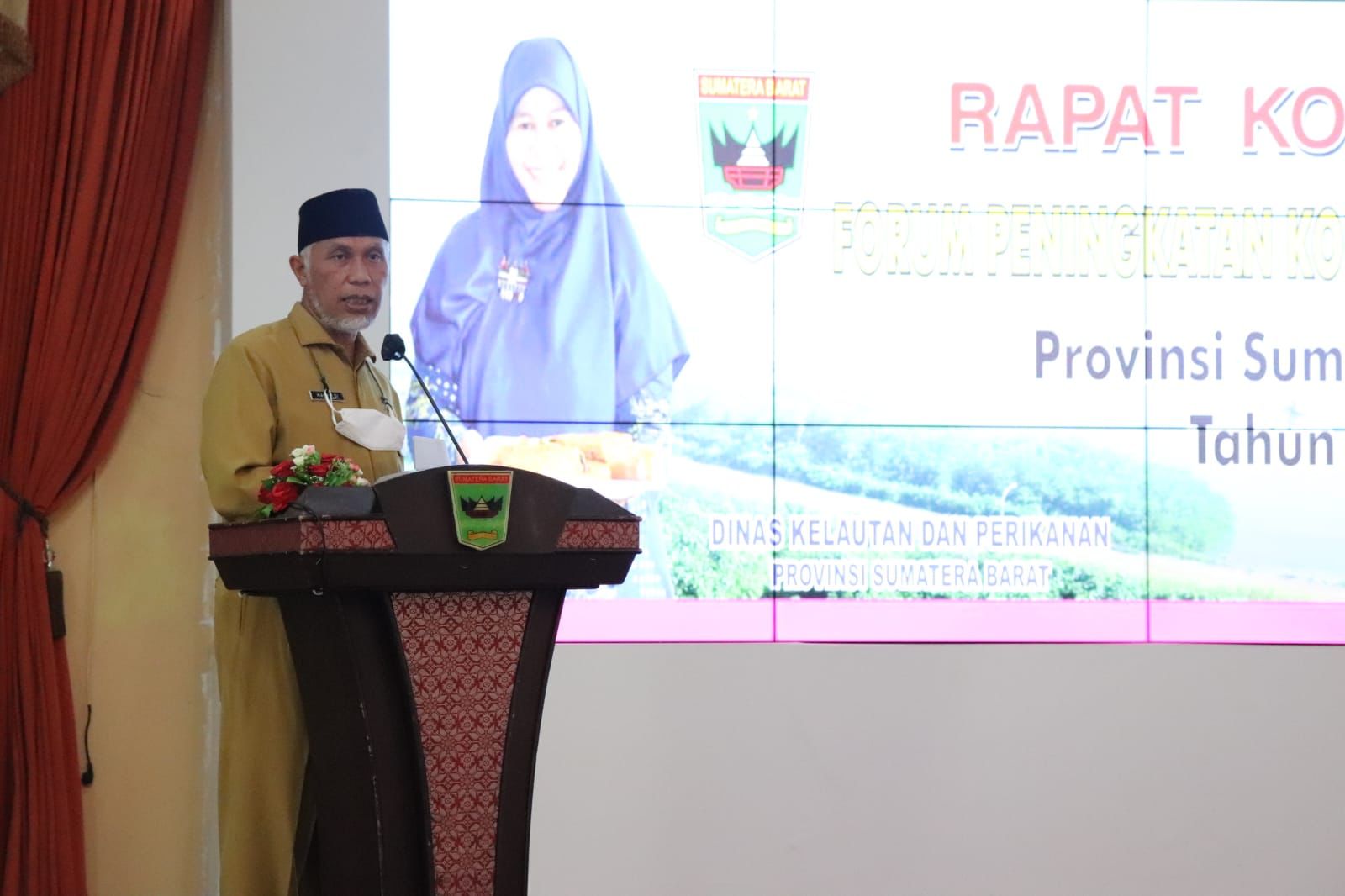 Hal ini disampaikan oleh Gubernur Sumbar Mahyeldi Ansharullah membuka acara Rapat Koordinasi dan sekaligus mengukuhkan pengurus Forum Peningkatan Konsumsi Ikan (Forikan) Sumbar di Auditorium Gubernuran, Selasa (9/11/2021).
