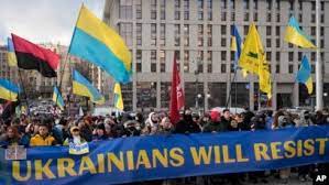 Suaraindo.id–Ribuan warga Ukraina berunjuk rasa di seluruh Kyiv pada Sabtu (12/2) untuk menunjukkan persatuan di tengah ancaman invasi Rusia. Kantor berita AFP melaporkan, warga mengibarkan bendera dan menyanyikan lagu kebangsaan di tengah suhu dingin.