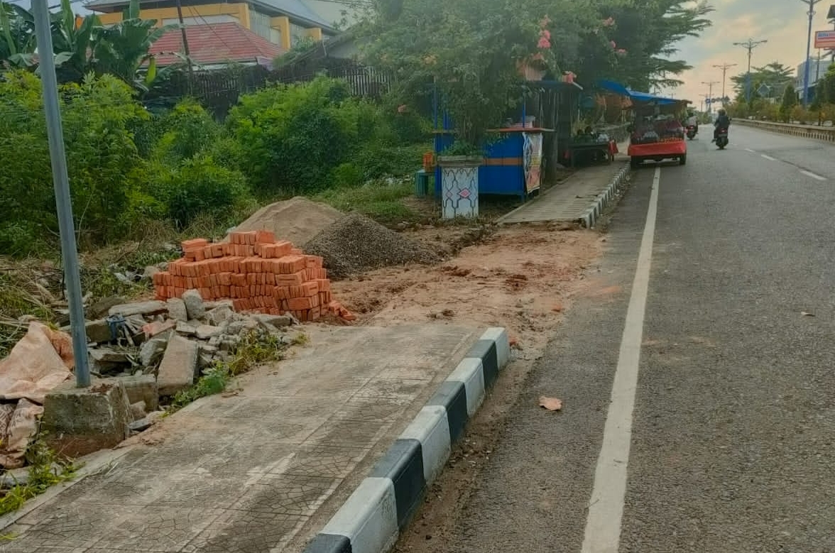 Saat media ini kelokasi terlihat trotoar tersebut telah dirusak dan terpantau ada tumpukan batu bata, pasir dan batu split.