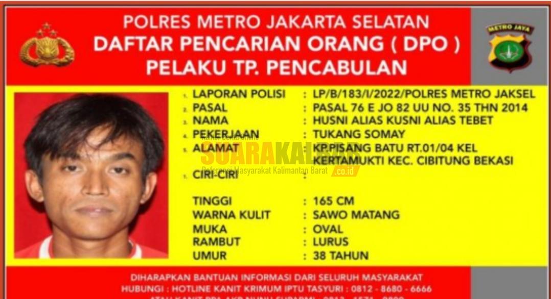Suaraindo.id– Polres Metro Jakarta Selatan telah menerbitkan status Daftar Pencarian Orang (DPO) terhadap K alias Kusni, tukang siomay yang mencabuli bocah berinisial ZF (6) di kawasan Jagakarsa, Jakarta Selatan beberapa waktu lalu.