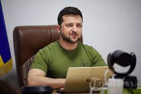 Zelenskyy, duduk di belakang meja dan mengenakan kaos oblong hijau di samping bendera Ukraina biru kuning, mengatakan, invasi dan serangan Rusia selama lima minggu lebih terhadap negaranya “melemahkan seluruh struktur keamanan global.”