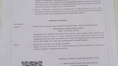 Suaraindo.id – Isu polemik yang beredar diluar adanya kepengurusan Pemuda Panca Marga (PPM) yang lain, Ketua Umum PPM Samsudin Siregar, SH bersama jajaran dan tim kuasa hukum sambangi Kantor Kemenkumham di Jln. Rasuna Said, Jakarta Selatan, dengan agenda untuk mempertanyakan apakah ada nama perkumpulan PPM yang lain dikelurahan di Kemenkumham.