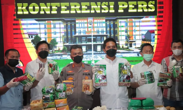 Kegiatan Konferensi pers tersebut dipimpin langsung oleh Direktur Reserse Narkoba Polda Lampung Kombes Pol. Aris Supriyono didampingi Kasubbid Penmas Bidhumas AKBP. Rahmad Hidayat, Kasubdit I Ditresnarkoba AKBP Ujang Supriyanto.