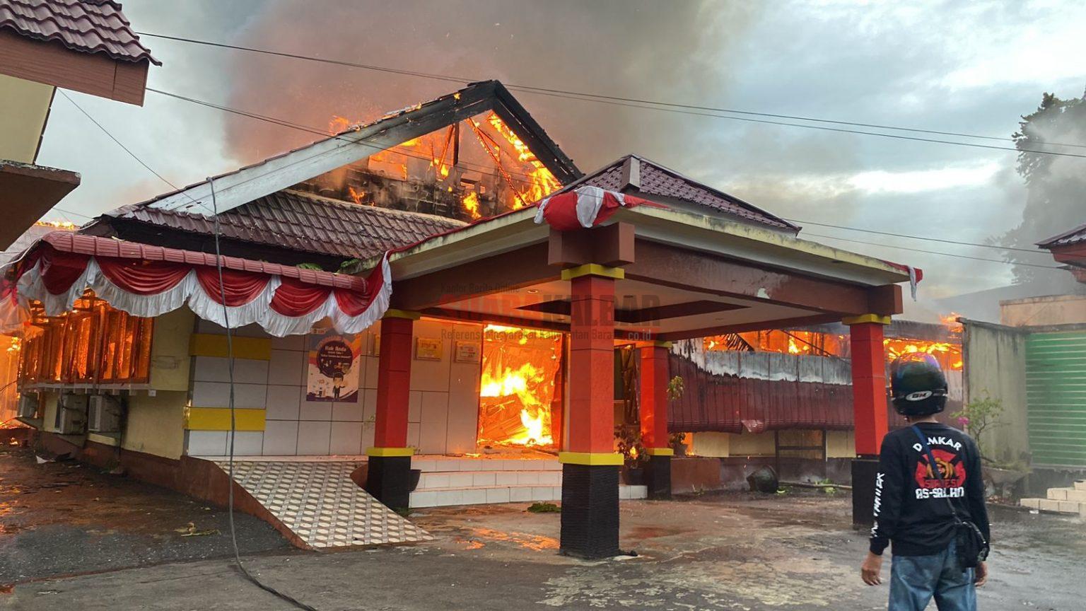 Tampak pada saat kebakaran tersebut Kepala Balitbang yang masih menggunakan seragam ASN menatap sedih Kantor Balitbang Kalbar yang terbakar tersebut.