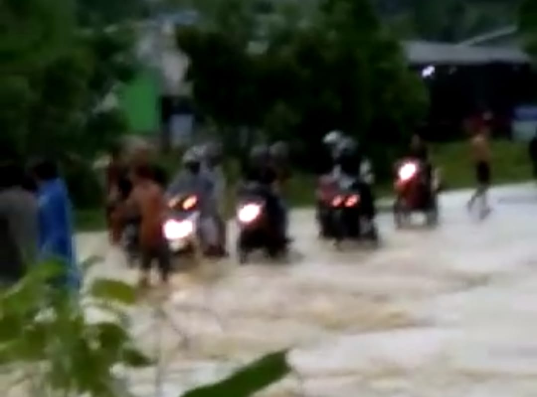 Ihsan, salah satu warga mengaku, rumah penduduk yang berada di daerah itu terendam banjir. Kemudian di jalan raya nasional juga cukup tinggi, sehingga sejumlah kendaraan khususnya roda dua yang melintas terpaksa harus turun dan mendorong.