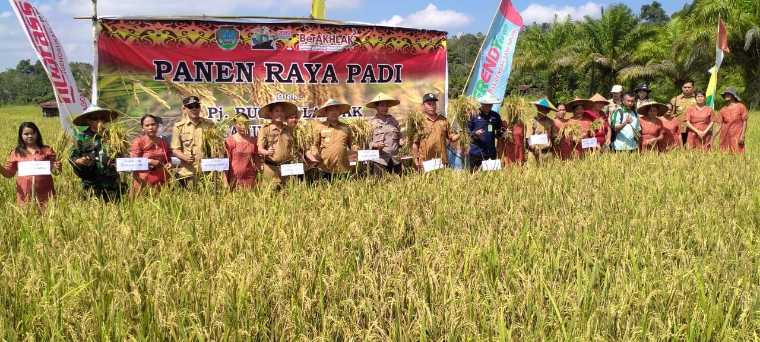 Pj. Bupati Landak Samuel memberikan ucapan selamat atas terselenggaranya Panen Raya Padi di Dusun Seginah, dengan semangat para petani sehingga memperoleh padi yang sangat luar biasa.
