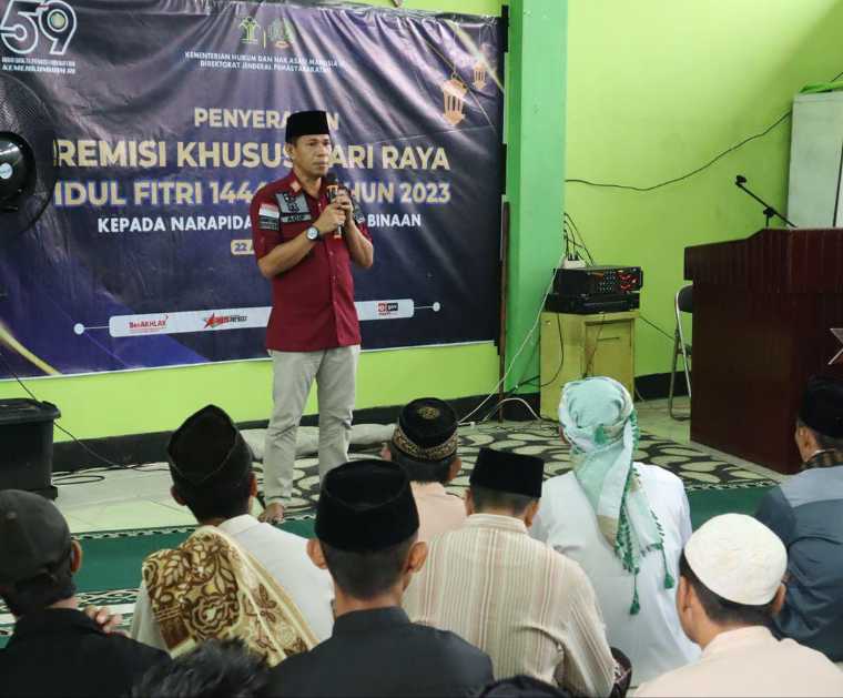 Bertindak sebagai Imam dan chotib pada sholat tersebut,ustadz Muhammad Suparmin dilanjutkan dengan Pembacaan Sambutan Menteri Hukum dan HAM oleh Kepala Kantor Wilayah Kemenkumham Kalimantan Barat, melalui daring dan Pembacaan Remisi Umum oleh Kepala Subseksi Pelayanan Tahanan serta Penyerahan secara simbolis SK Remisi Khusus Hari Raya Idul Fitri 1444 H oleh Kepala Rutan Kelas IIB Sanggau Acip Rasidi.