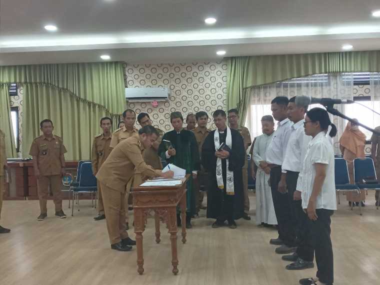 Suaraindo.id – Suasana khidmat terasa di Aula lantai II kantor Bupati Sekadau, Selasa (11/4/2023), saat dilaksanakan pengucapan sumpah dan janji bagi anggota Badan Permusyawaratan Desa (BPD) Periode 2023-2029.