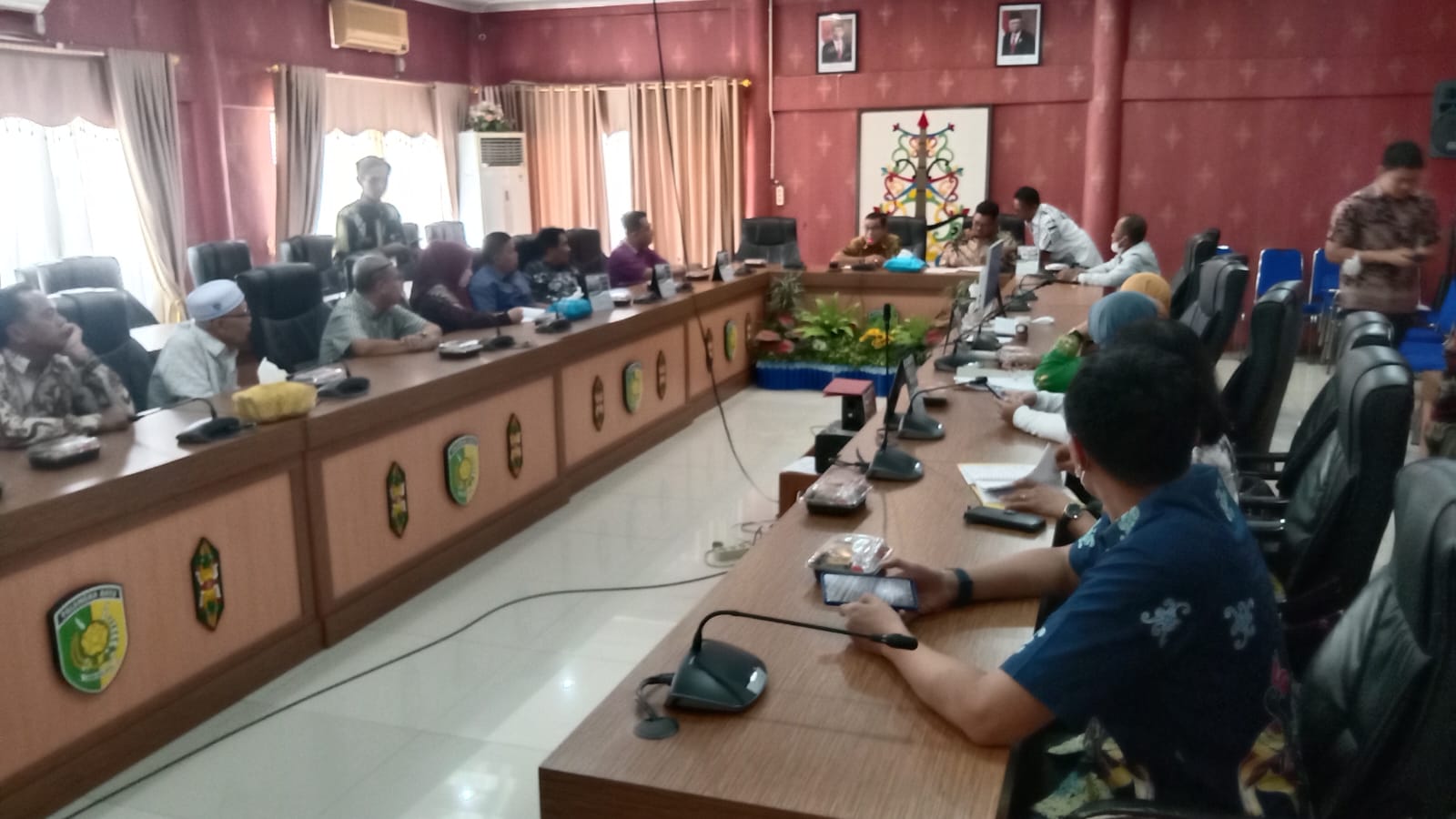 Kunjungan kerja rombongan DPRD Kabupaten Hulu Sungai Selatan diterima diruang rapat komisi DPRD Kota Palangka Raya sebanyak 10 orang anggota dewan dan 2 orang tenaga pendamping dari sekretariat DPRD Kabupaten Hulu Sungai Selatan.