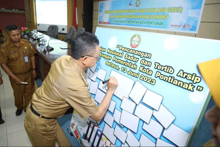 “Pemkot Pontianak secara berkesinambungan, setiap tahunnya melaksanakan pelatihan mulai dari pejabat eselon IV sampai petugas pengelola kearsipan,” kata Wali Kota Edi ketika membuka Pencanangan Gerakan Nasional Sadar dan Tertib Arsip (GNSTA) dan launching aplikasi Srikandi di Aula Sultan Syarif Abdurrahman, Kantor Wali Kota Pontianak, Selasa (13/6/2023).