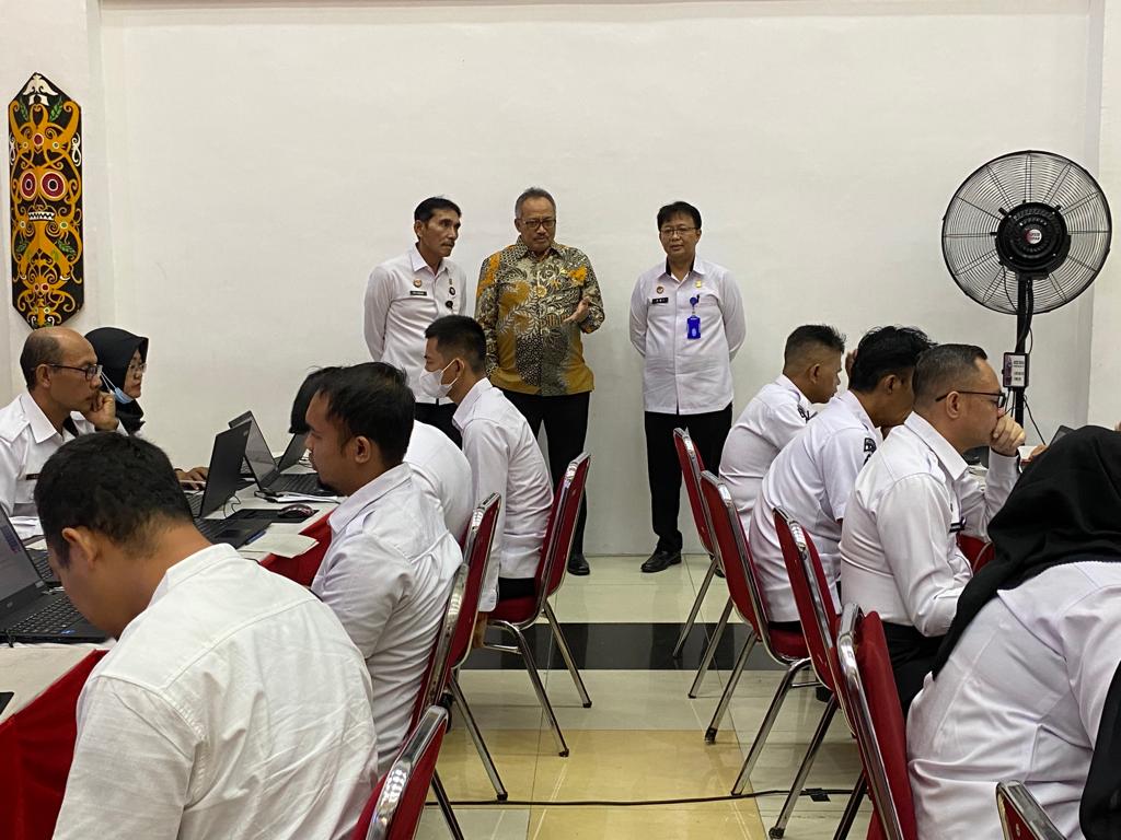 Kepala Pusat Penilaian Kompetensi ASN BKN Bajoe Loedi Hargon, didampingi Kanwilkumham Pria Wibawa melihat Pelaksanaan Uji Kompetensi dilingkungan Kanwilkumham Kalbar. SUARAINDO.ID/ist