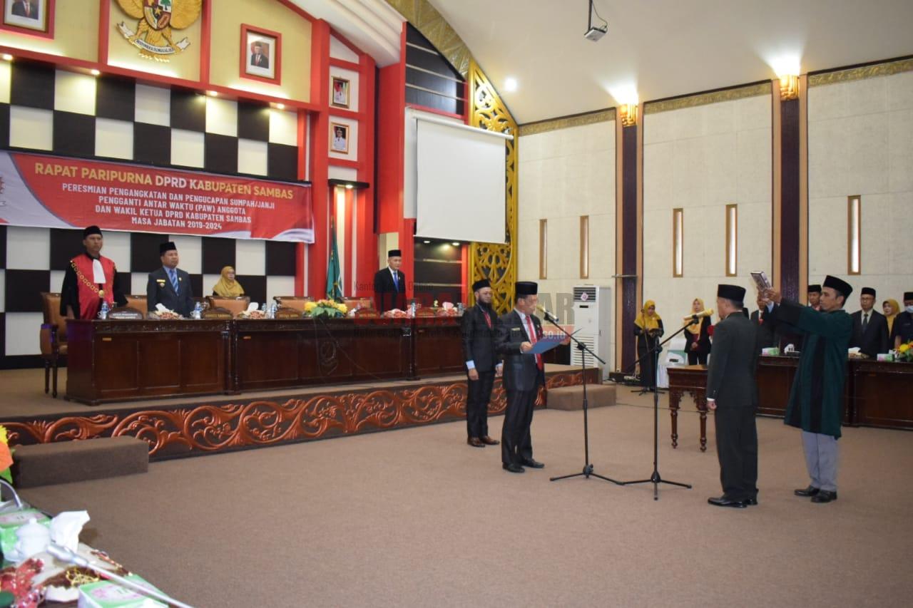 Rapat Paripurna dalam rangka Peresmian Pemberhentian dan Pengangkatan Pengganti Antar Waktu (PAW) dan Peresmian Pengangkatan Jabatan Pimpinan DPRD untuk Wakil Ketua II DPRD Kabupaten Sambas Sisa Masa Jabatan 2019-2024.