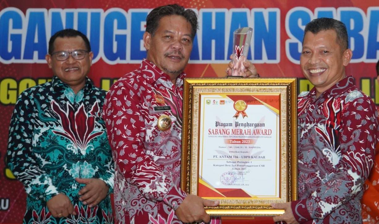 Sementara itu perwakilan PT Antam TBK UBPB Kalbar yang merupakan Plh General Manager, Munadji usai menerima penghargaan Sabang Merah Award yang diserahkan Bupati Sanggau Paolus Hadi mengucapkan terima kasih atas apresiasi dan pengakuan dari Pemkab Sanggau atas kinerja tanggungjawab sosial dan lingkungan (TJSL) PT ANTAM Tbk – UBPB Kalbar.