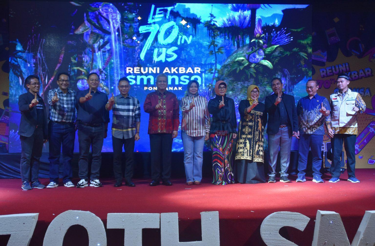 Suaraindo.id – Penjabat (Pj) Gubernur Kalimantan Barat Harisson didampingi Pj. Ketua TP PKK Provinsi Kalimantan Barat Windy Prihastari yang juga merupakan Ketua Ikatan Alumni SMA Negeri 1 (Smansa) Pontianak menghadiri Acara Reuni Akbar ke- 70 Tahun Smansa Pontianak bertempat di Ballroom Hotel Aston Pontianak, Minggu (17/9/2023) malam.