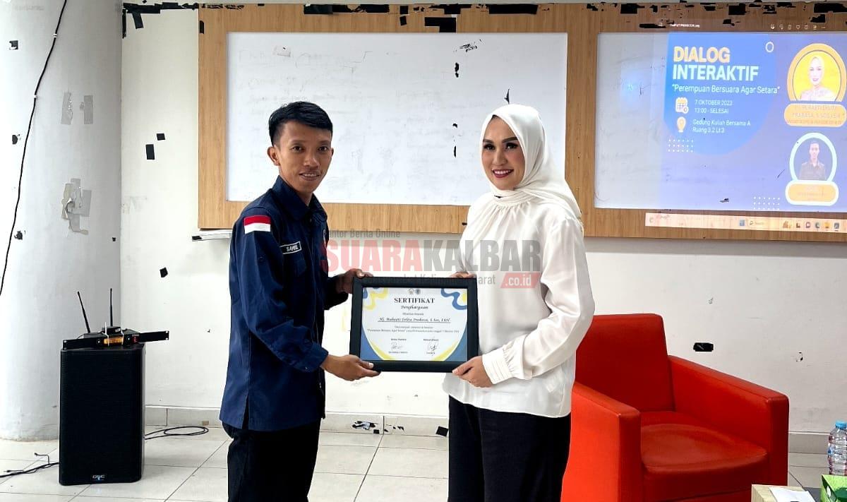 Suaraindo.id – Ketua Himpunan Mahasiswa Ilmu Politik (Himapol) Universitas Tanjungpura (Untan) Sahrul menggelar Dialog Interaktif dengan mengangkat tema perempuan bersuara agar setara dengan menghadirkan Hj Rubaeti Erlita Prabasa di Gedung Kuliah bersama A Universitas Tanjungpura, Sabtu (7/10/2023).